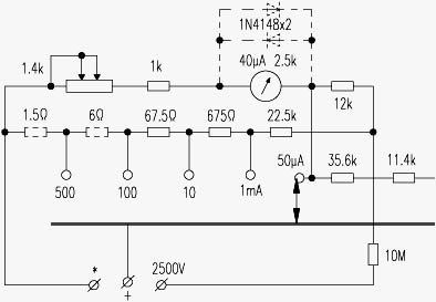 该表所附电路图中,表头应有两只保护二极管,但实际并未装上,故在使用中表头线圈易被烧坏。加装保护二极管并不难,按附图虚线所示加装即可,二极管可用1N4148型的。
