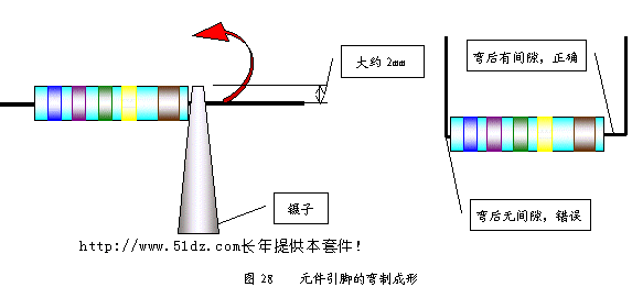 16.9  二极管的焊接要注意极性、将字弯在外面、位置正确、高度合适、焊点牢固美观;