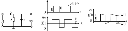 箝位的作用是使信号的起始电平固定在某个数值上,以图二说明:当电路输入一矩形波信号Ui。若无D时,Ui中的直流分量U被C隔开,只有交流分量传至输出端,使用输出信号失去直流分量而改变了起始电平,用了箝位二极管D后,当Ui=E时,D截止,C充电,因时间常数RC很大,所以输出Uo稍微下降了△U;当Ui突然变至零时,D导通;C经D很快放电,输出从-△U很快趋于零,因此输出信号被D箝位于零起始电平,也可以说,恢复了直流分量。