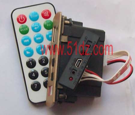 l 支持USB/SD卡切换、上一曲、下一曲、音量调节、EQ、播放/暂停、停止、单曲重复、静音、关机、直选歌曲。